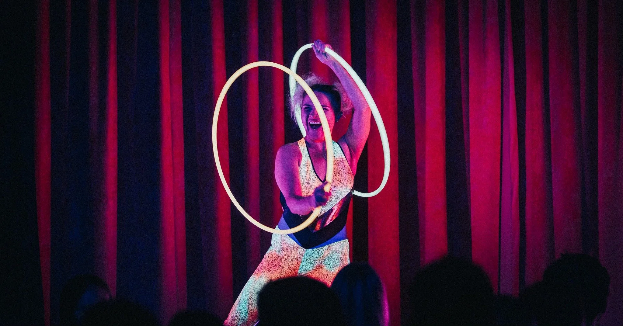 In "H-oops," the stage becomes a playground where chaos reigns supreme as props take on a life of their own, leaving the performer struggling to keep up. This unique performance piece delves into the unpredictable nature of live entertainment - and life itself - blending elements of hooping and clowning to create a dynamic and relatable experience.